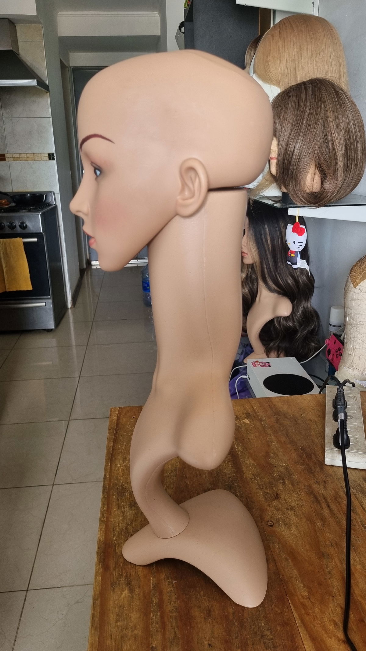 Maniqui ideal para exhibir las pelucas , fibra de plastico rigido totalmente desmontable . No lo recomiendo usar para apoyar y estilizar las pelucas ya que su base no es estable para peinados o movimientos bruscos . Solo para apoyar y exhibir . Facil armado .