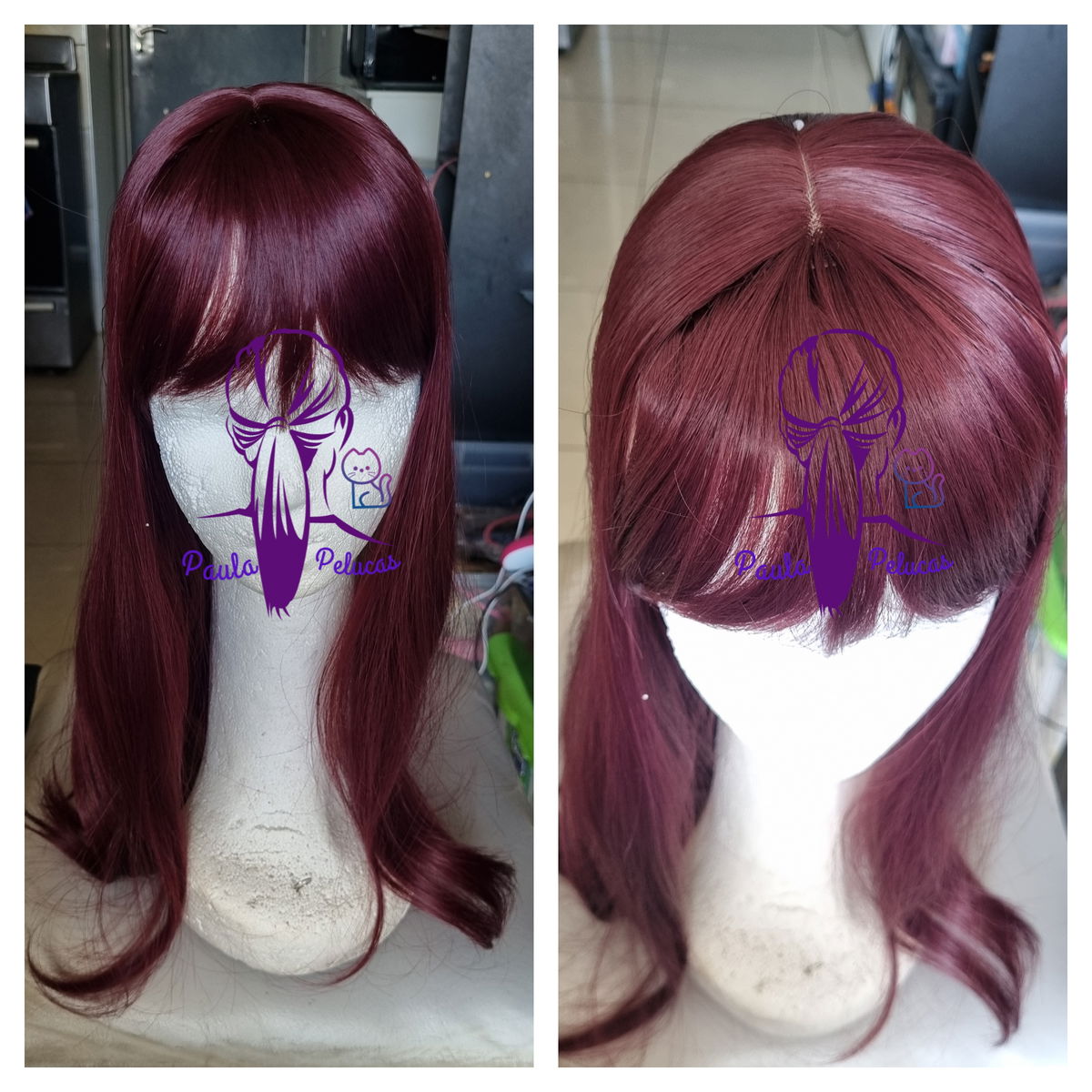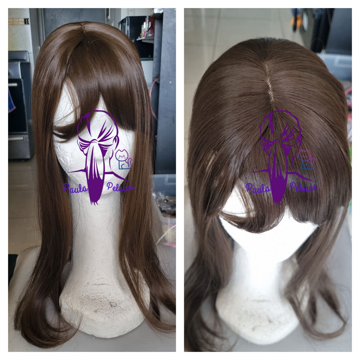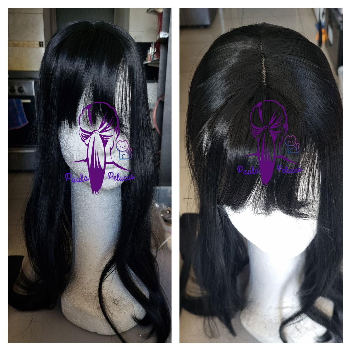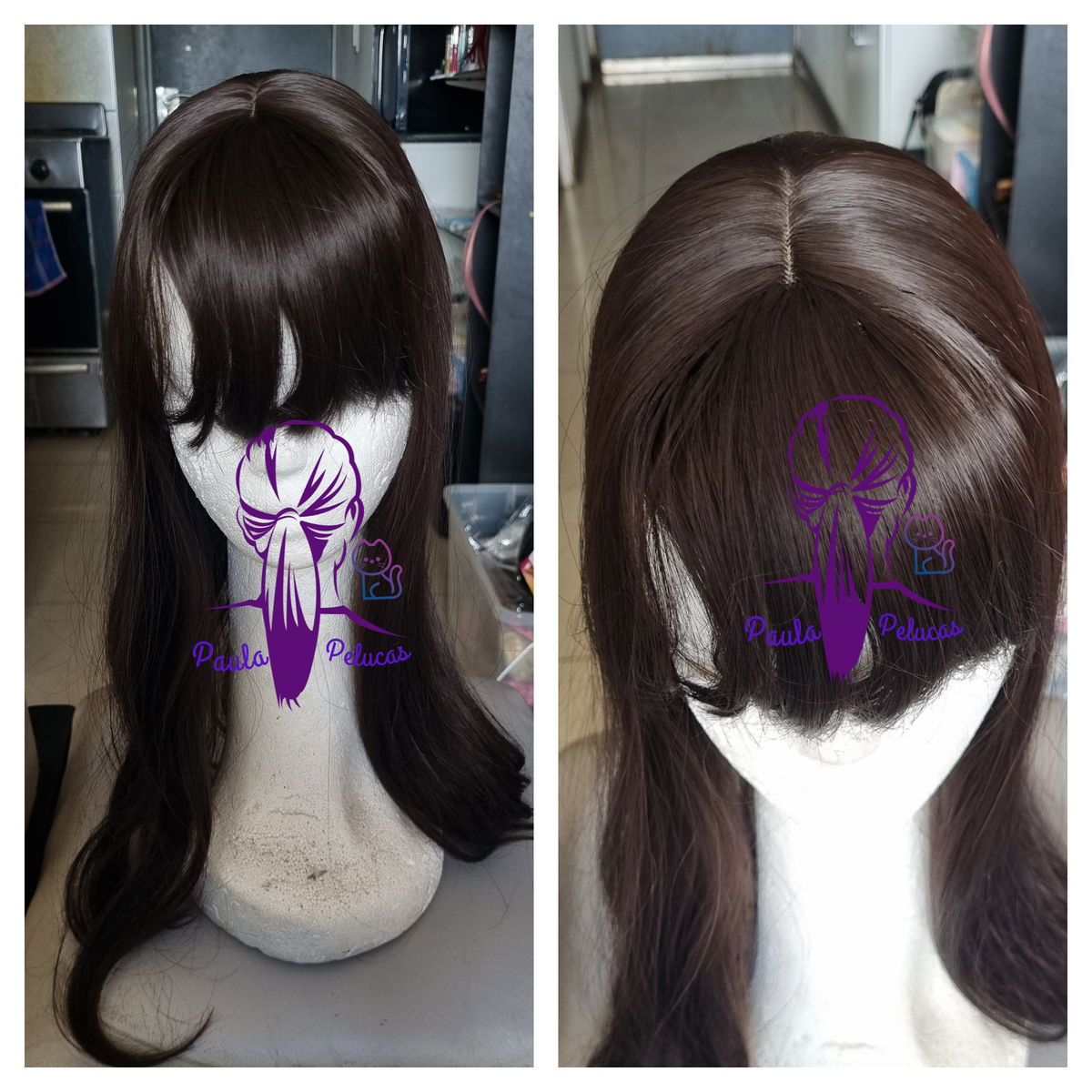 - Posee raya cuero cabelludo . Largo de 50cm.