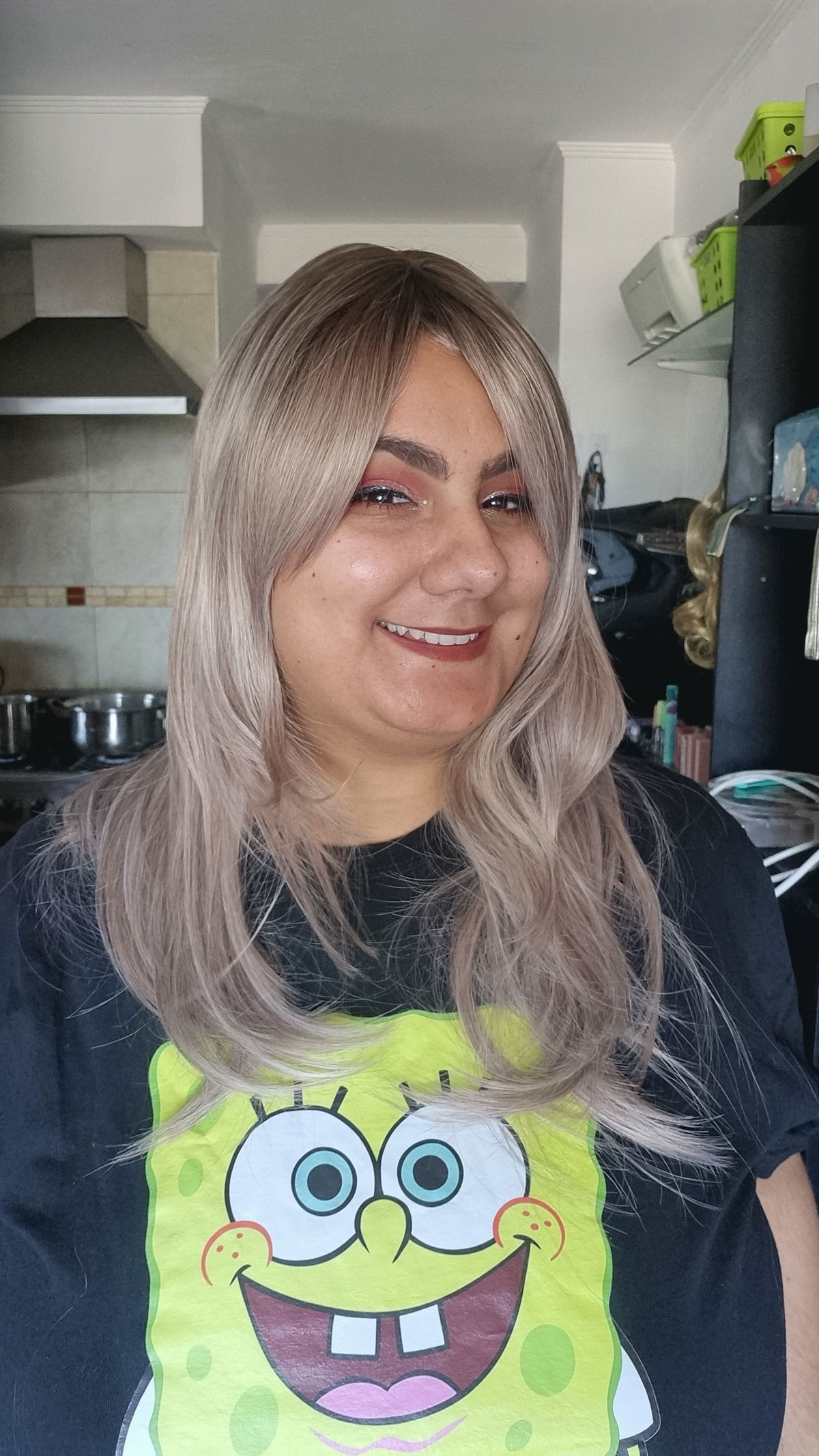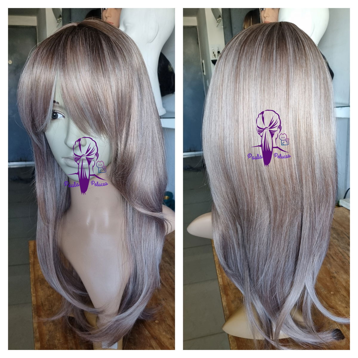 - Fibra sintética kanekalon opaca , raiz castaño degrade rubio ceniza mix rubios mas claros a oscuros .