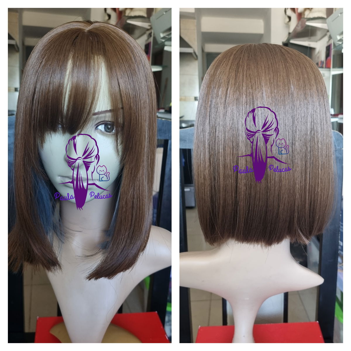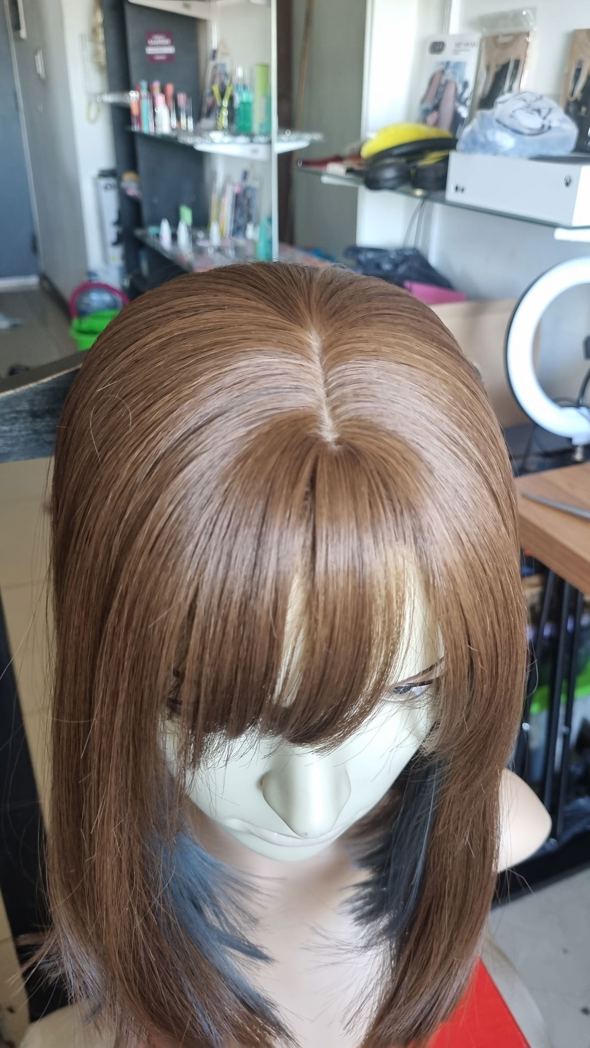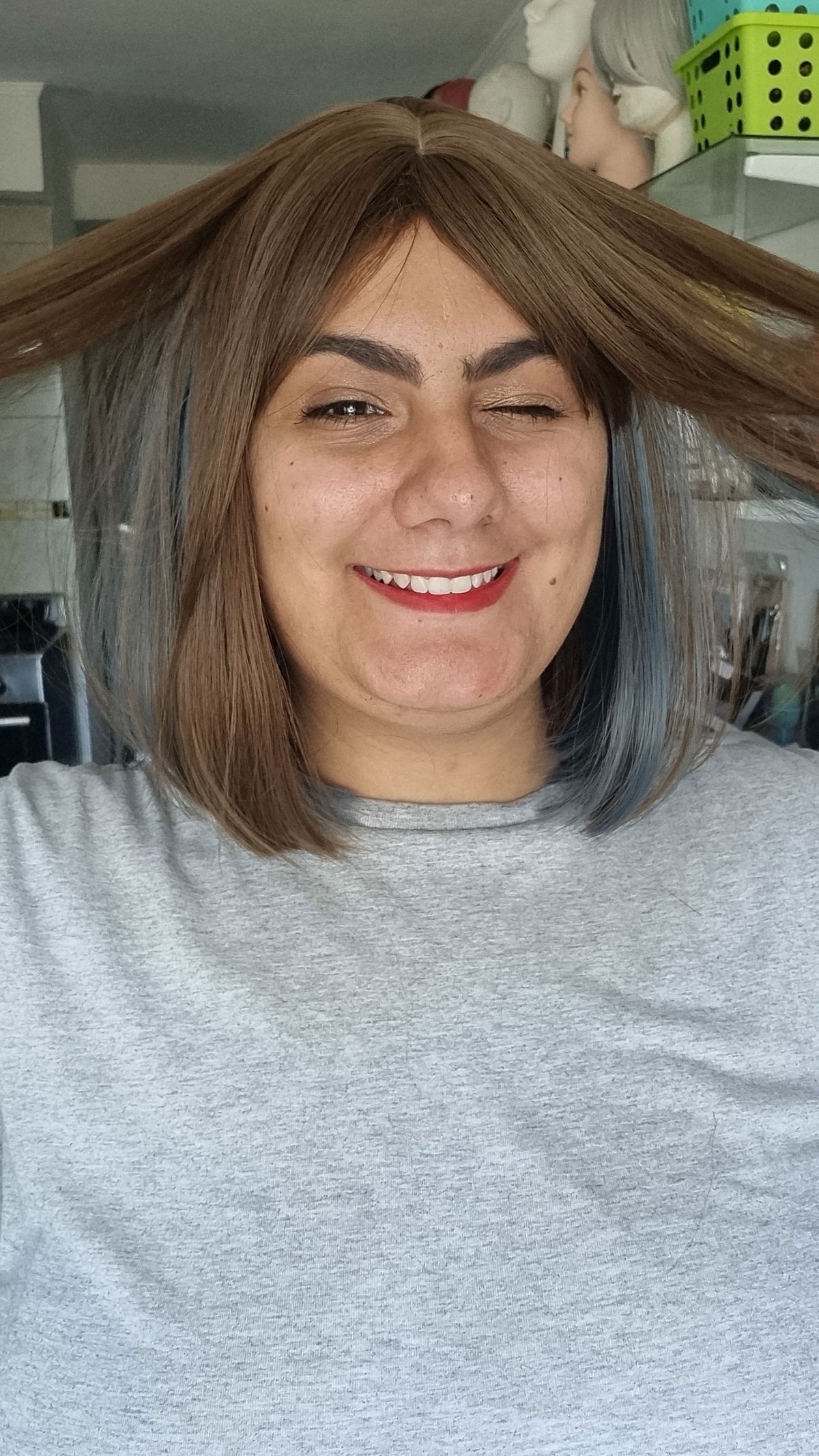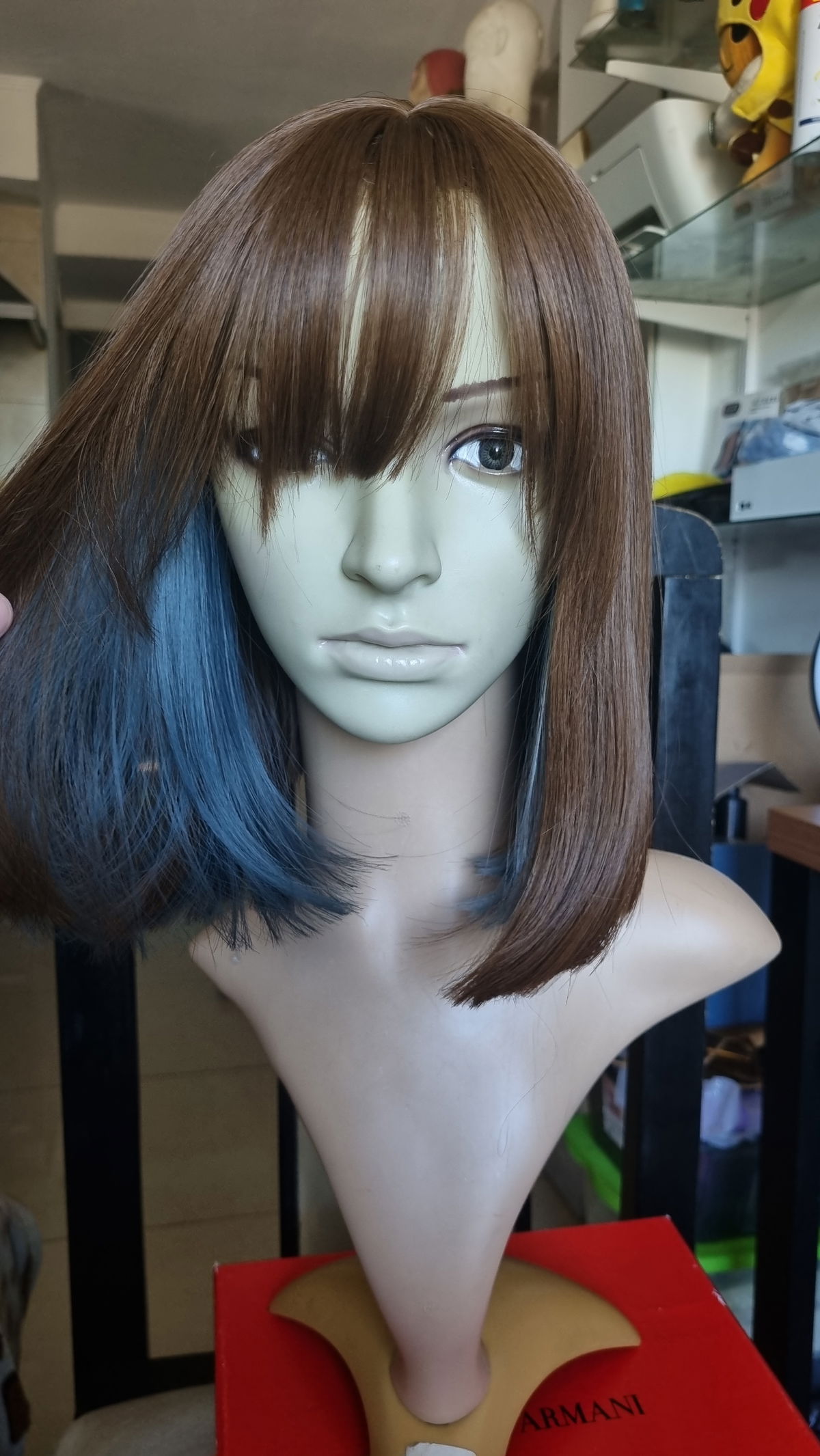 Peluca carre bicolor castaño claro con celeste