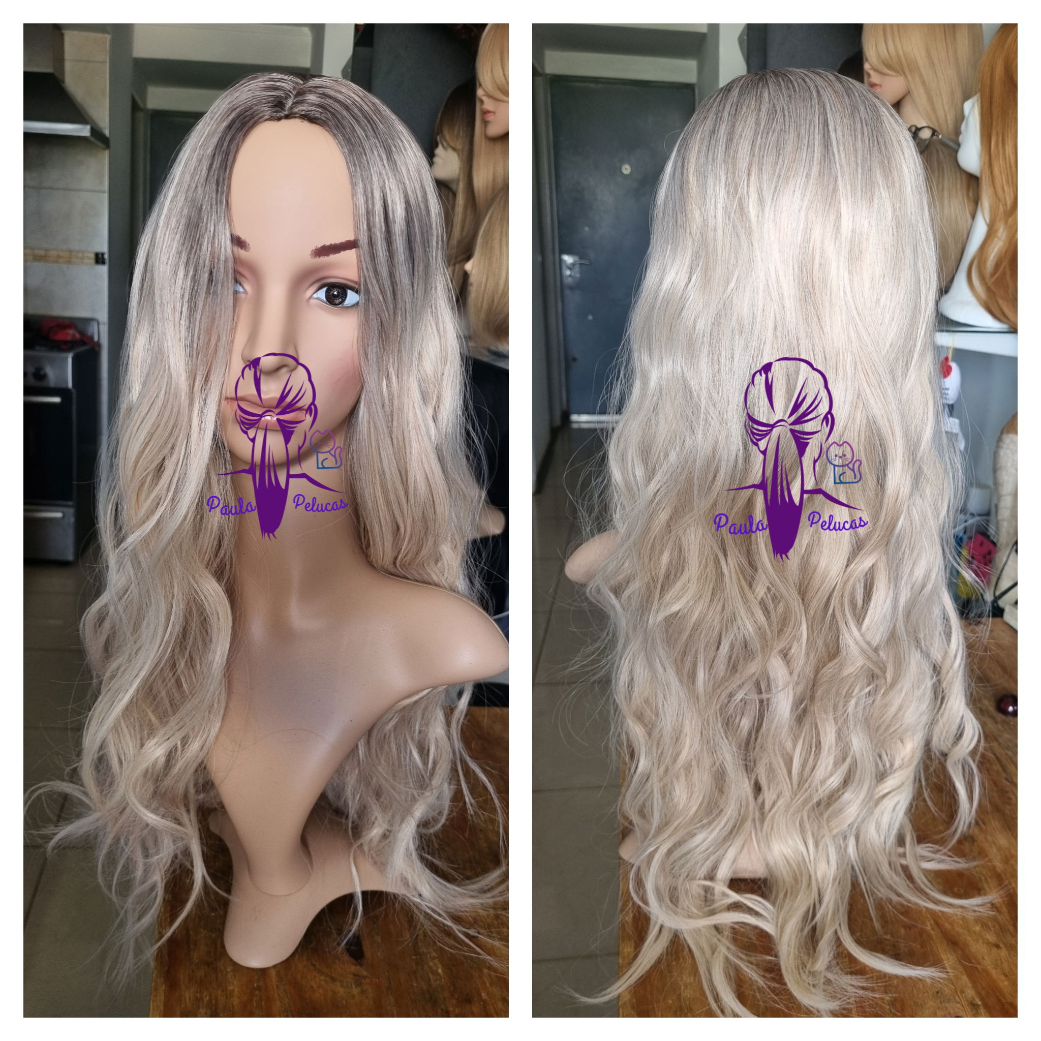 Fibra sintética kanekalon , tono castaño oscuro degrade rubio platino .