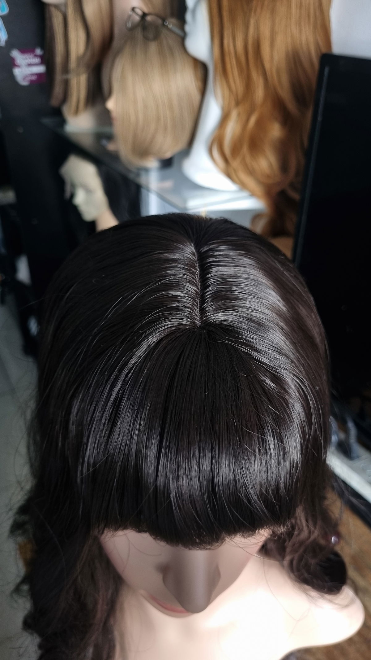 60cm de largo , posee raya cuero cabelludo .