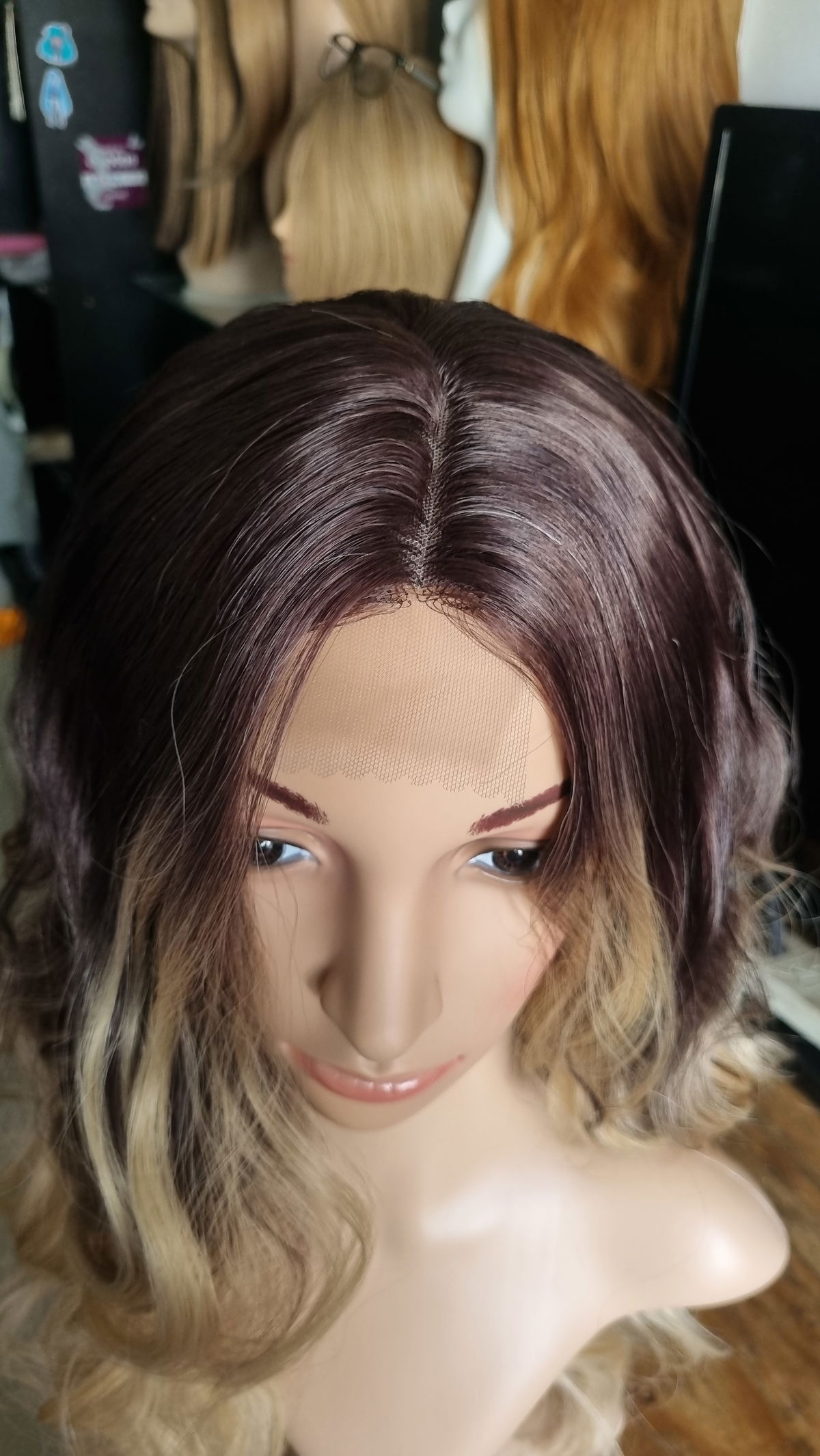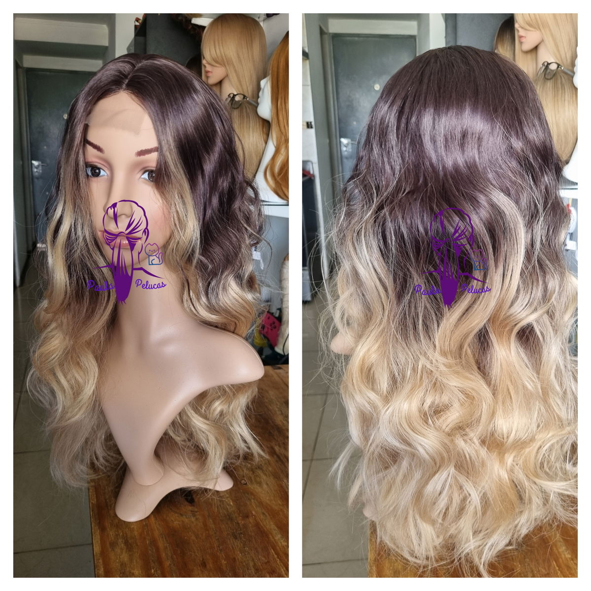 Fibra sintética kanekalon , tono castaño degrade rubio miel .