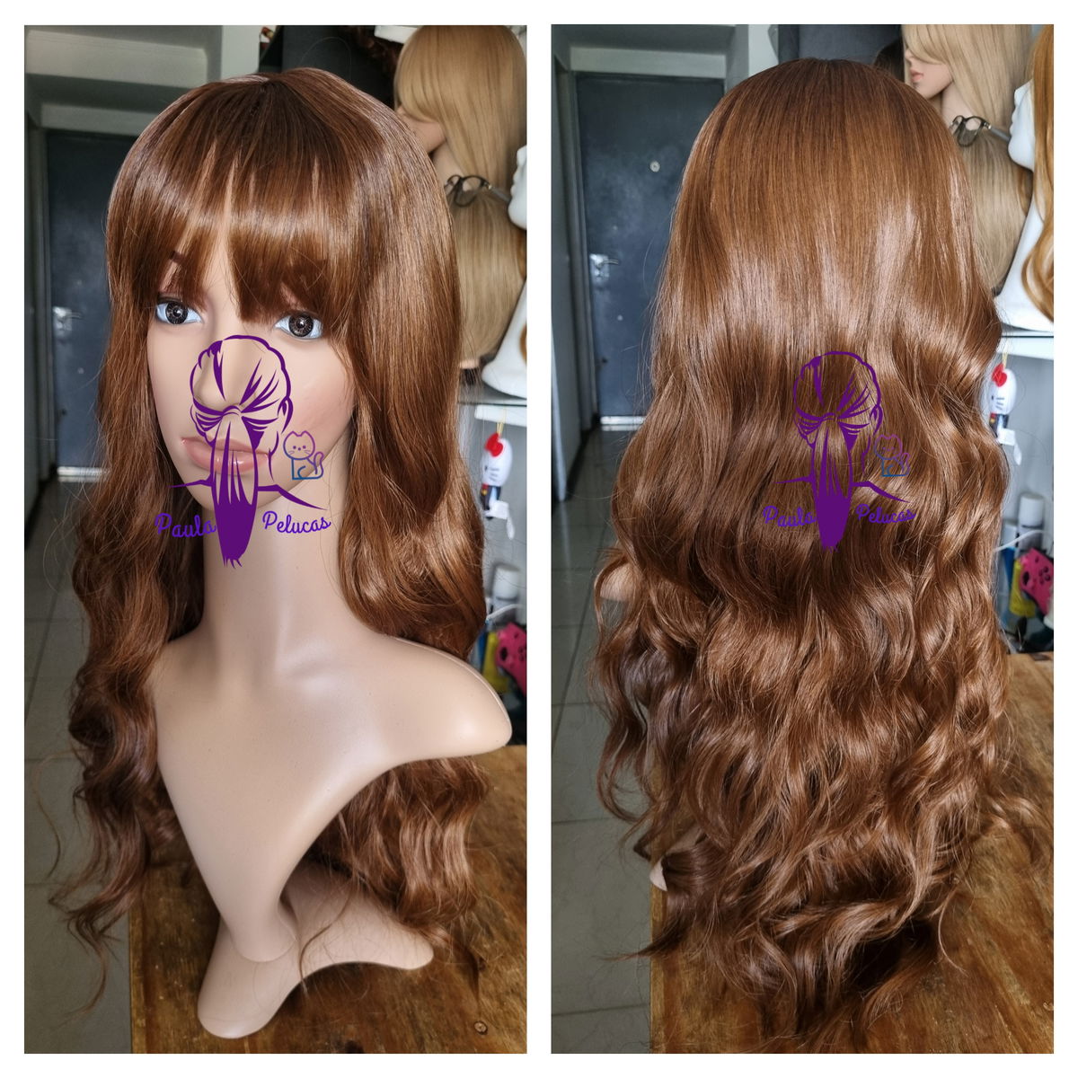 Fibra sintética kanekalon , tono castaño oscuro degrade cobrizo .