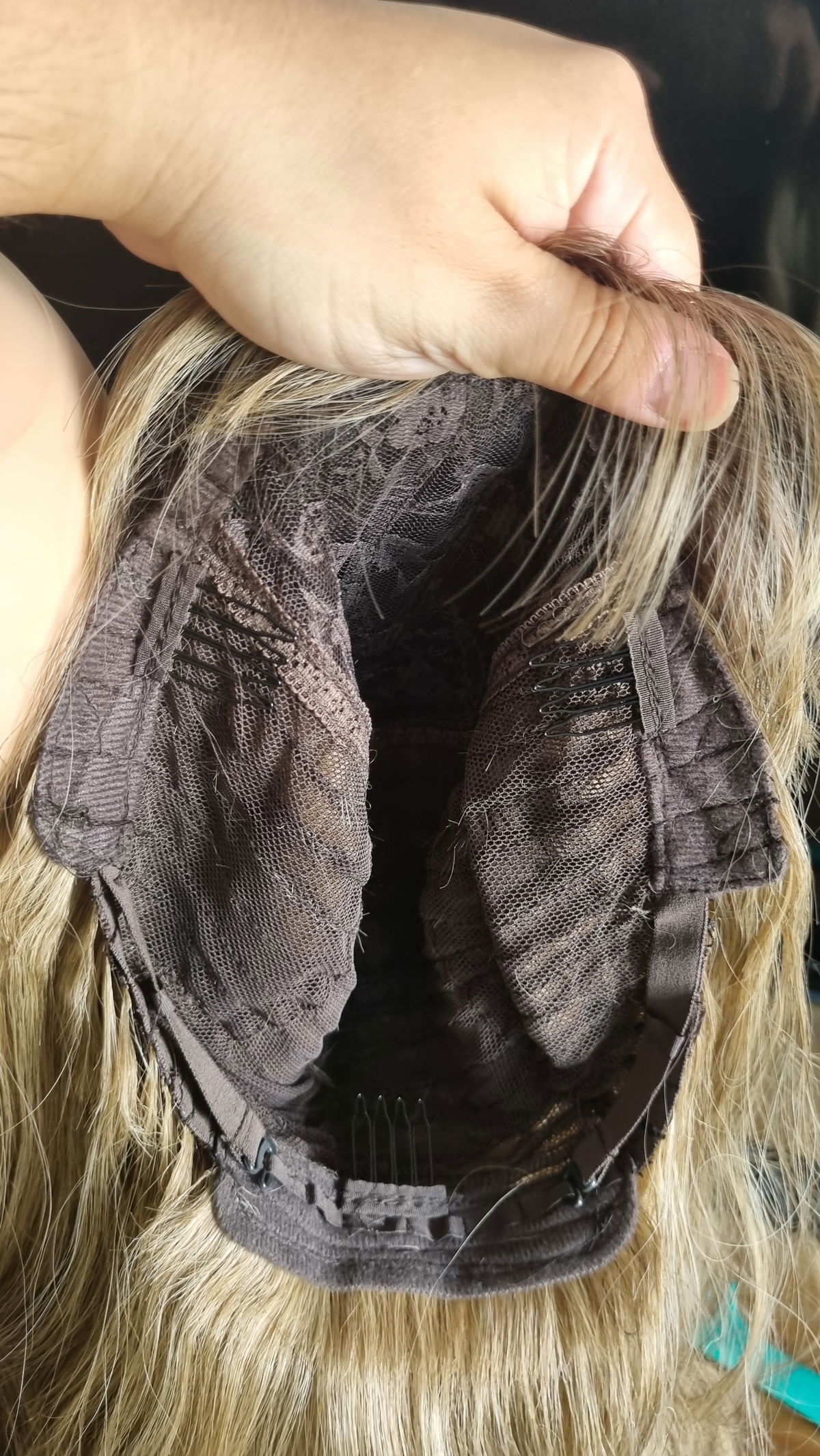 Red elastizada y ajustable en la nuca , posee 3 peinetas que van sujeta al pelo natural para que no se deslice la peluca .