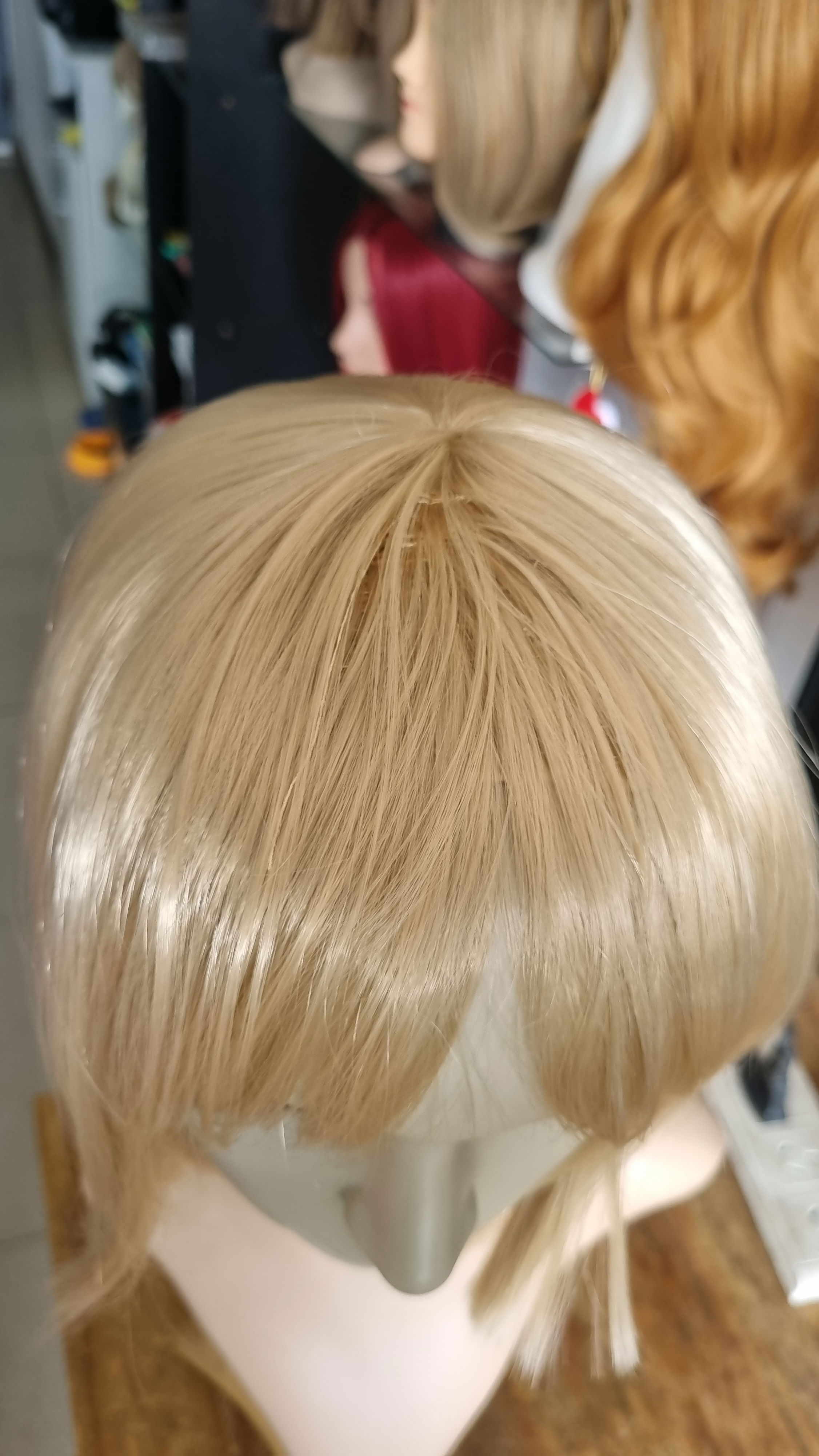 NOTA PARA EL COMPRADOR : esta peluca posee cant de pelo intermedio a poco pero ciertas área de atrás se nota la falta ( como se muestra en foto ) , ideal para estilizar con otra peluca o agregarle pelo .