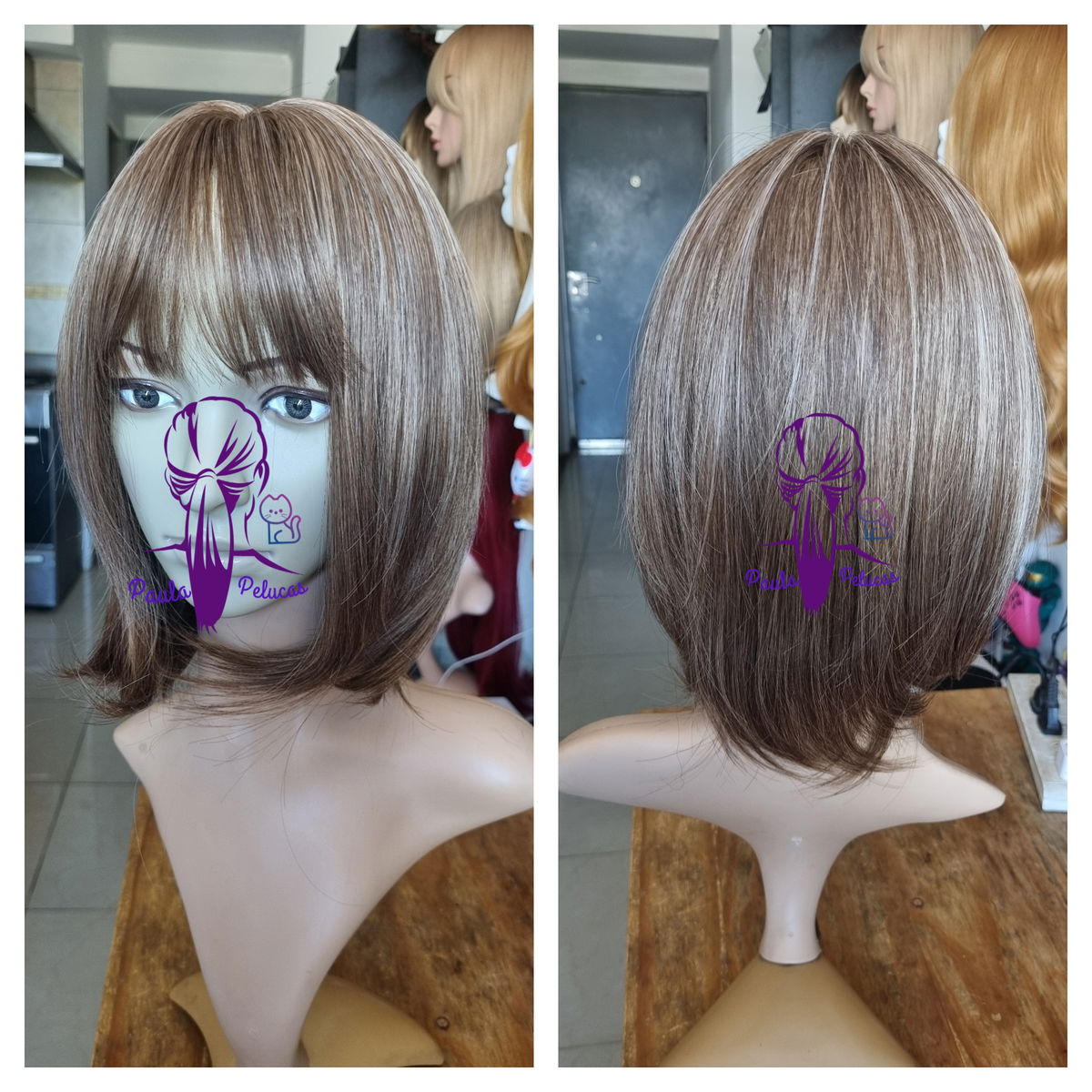 Peluca carre castaña con iluminación fibra premium