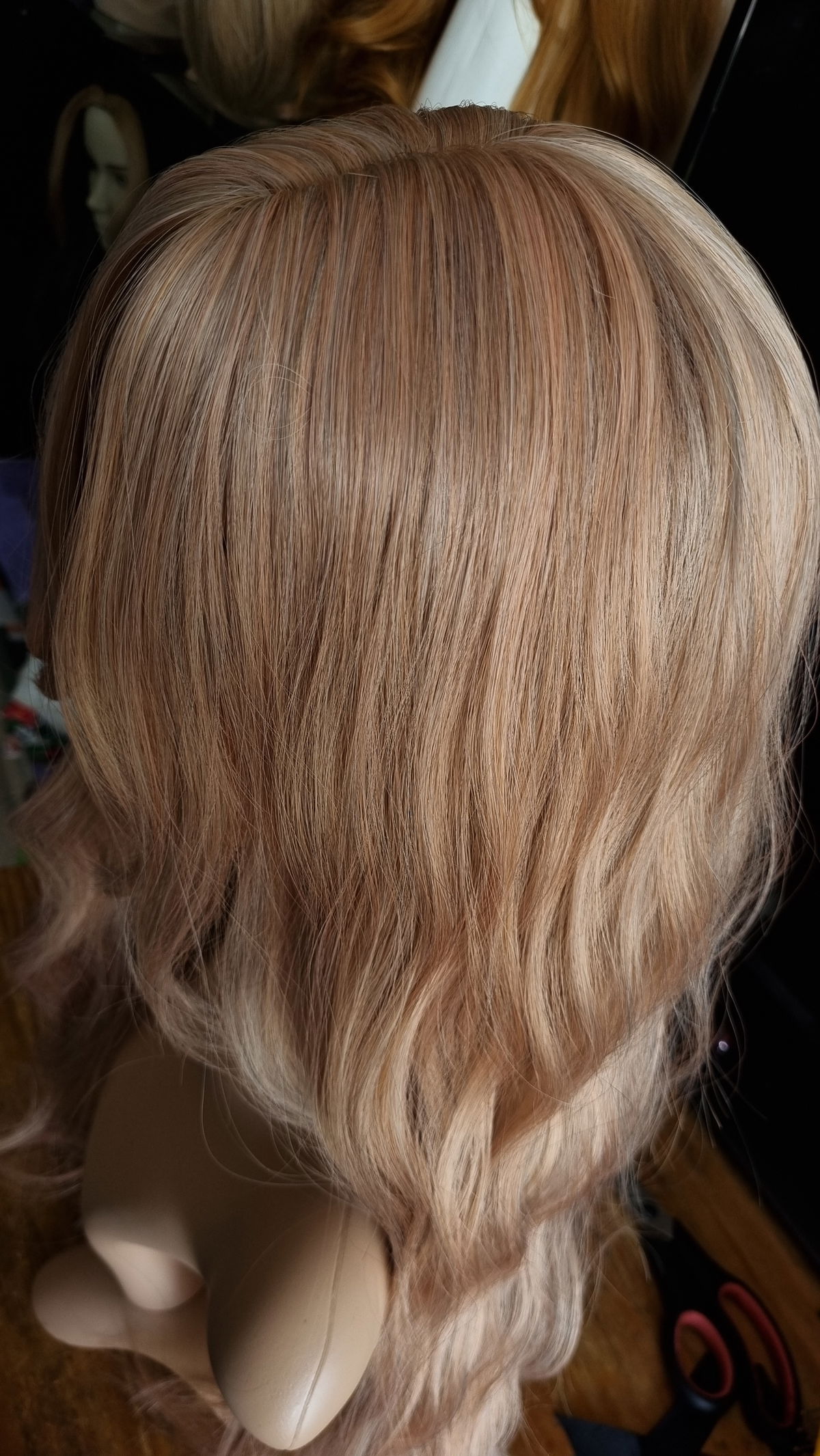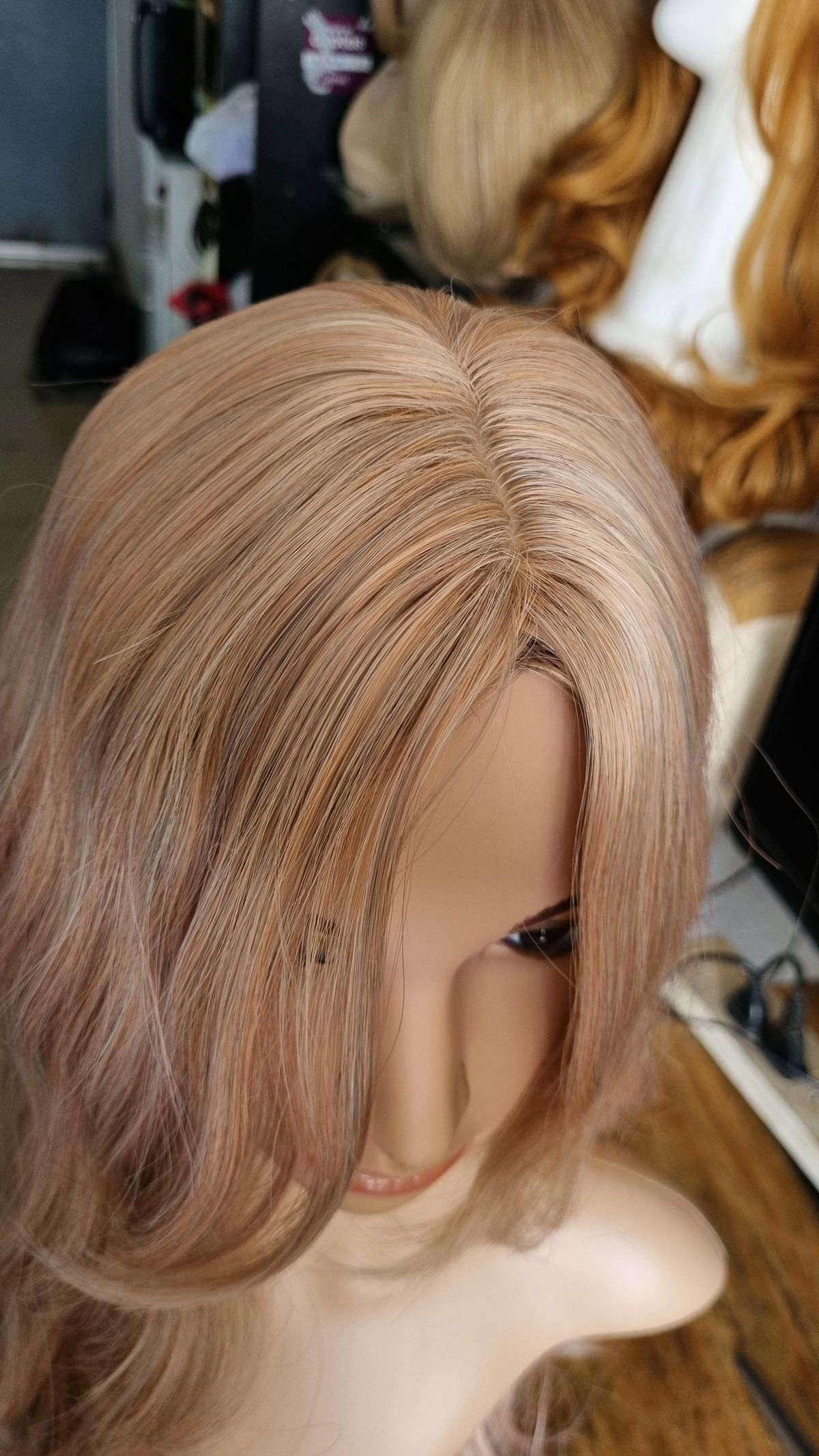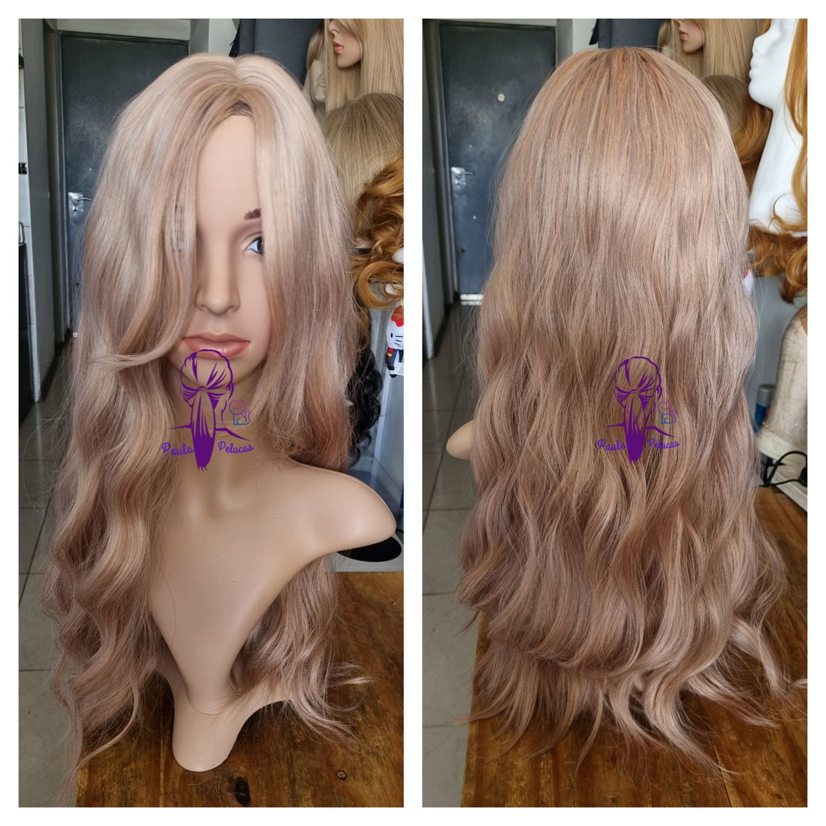 Fibra sintética kanekalon , tono rosa viejo/ceniza mix de pelitos blancos y rosas oscuros.