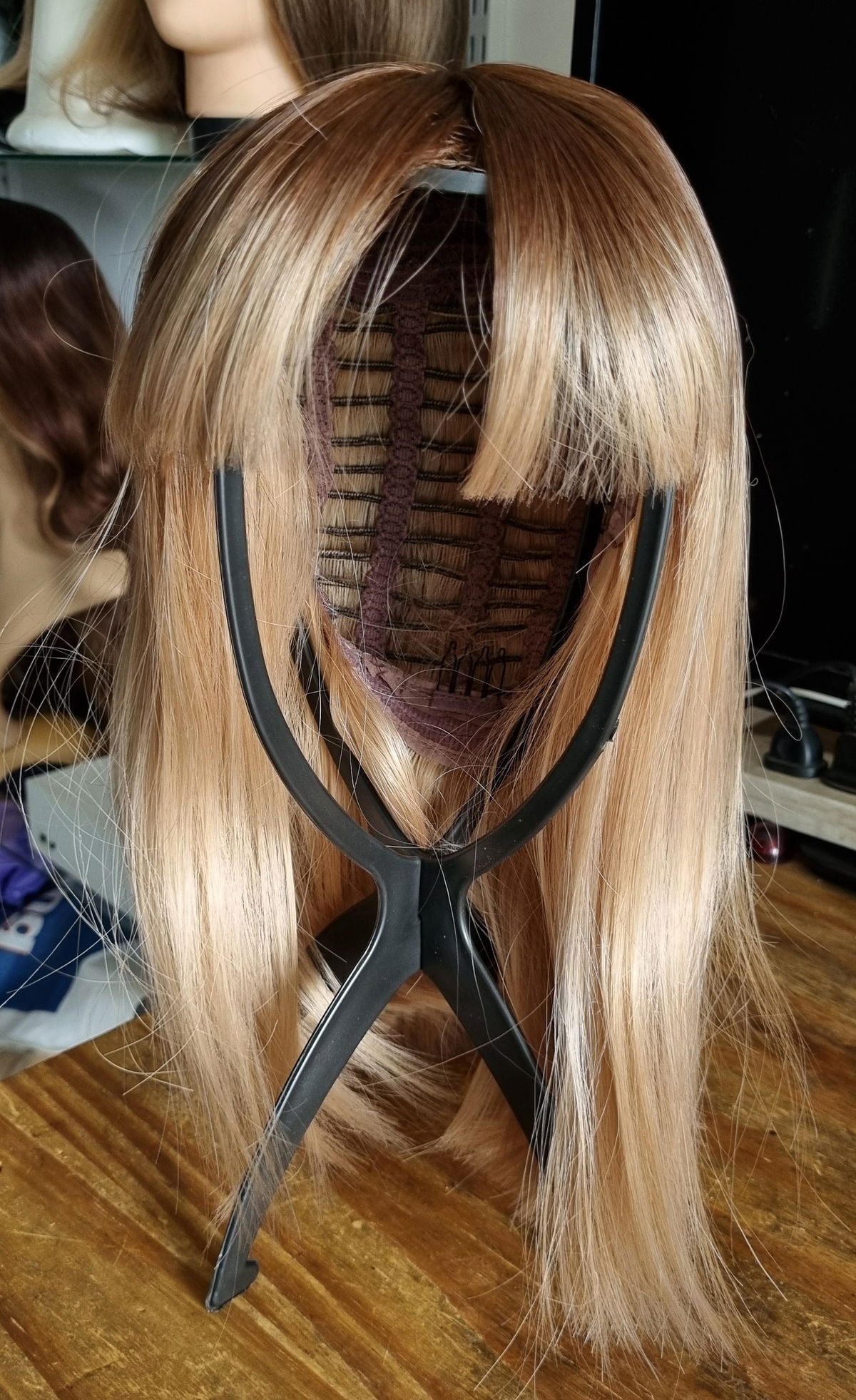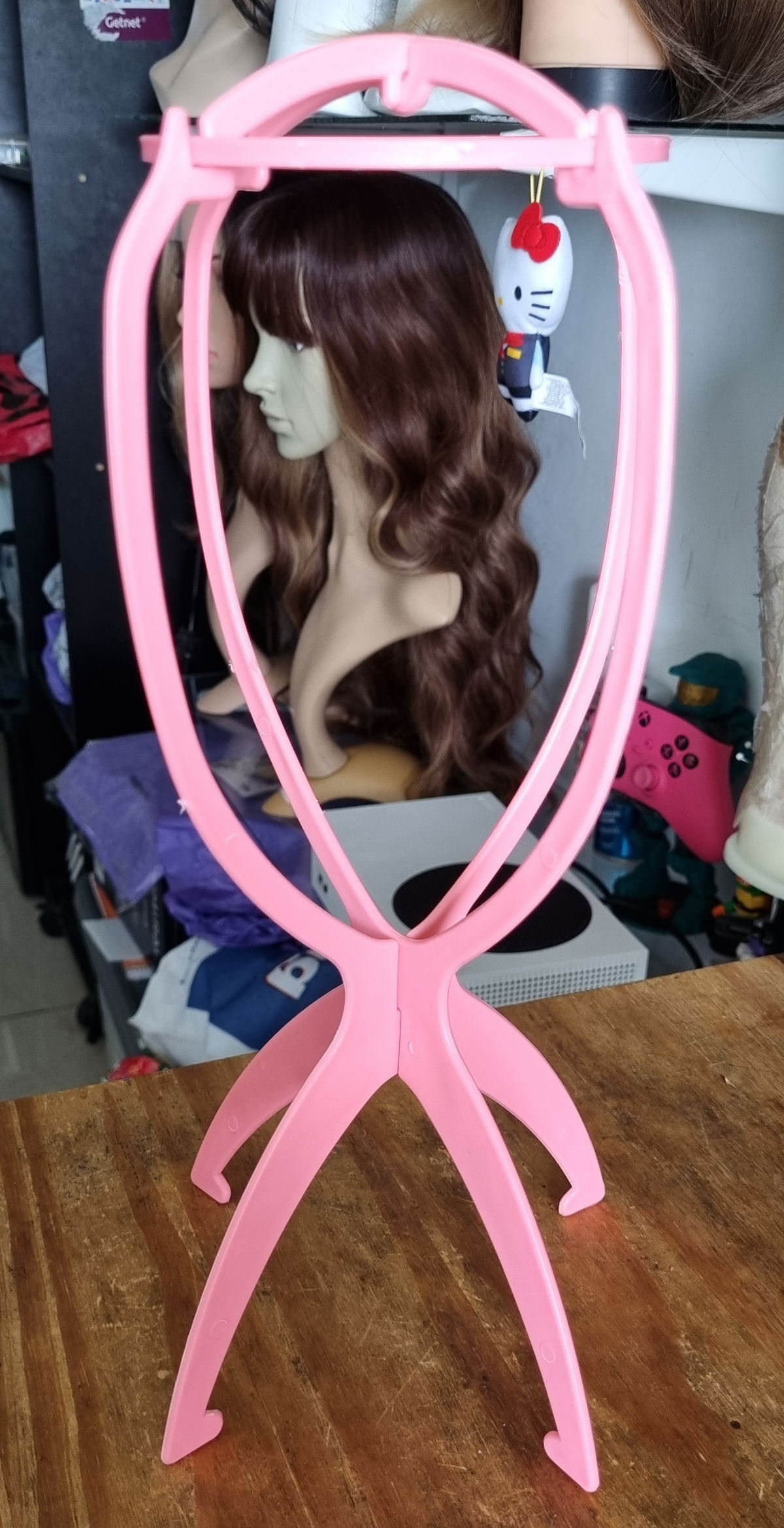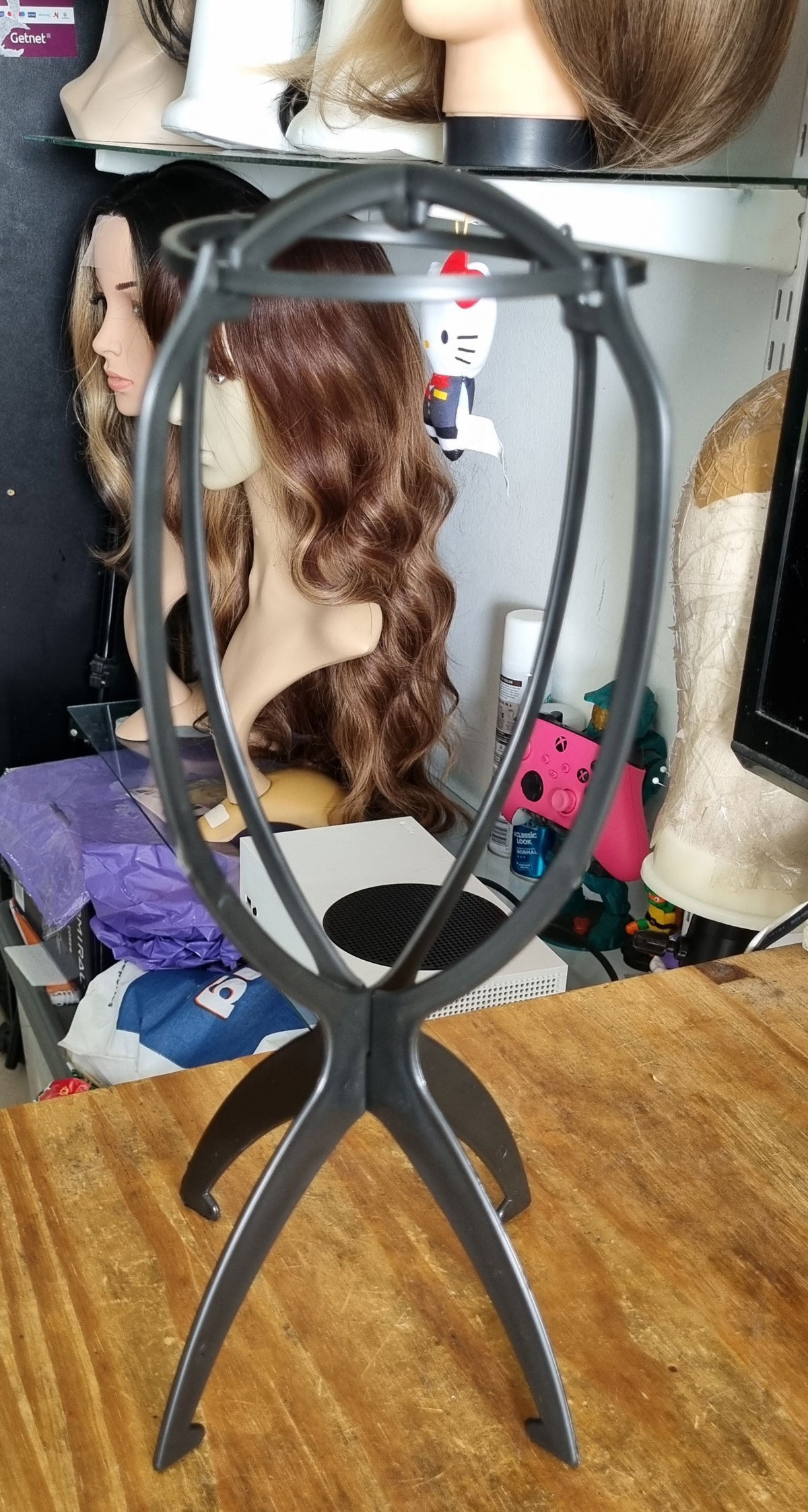 Soporte para pelucas transportable y facil de armas , consta de 3 partes que se unen entre sí, plástico totalmente rígido, ideal para exhibir tus pelucas de una forma mas elegante . Medida aprox de 30cm .