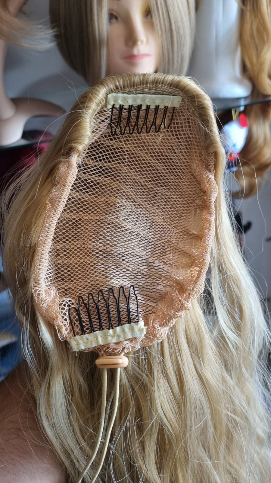- Se ajusta a medida y posee dos peinetas para sujetar a tu propio pelo .