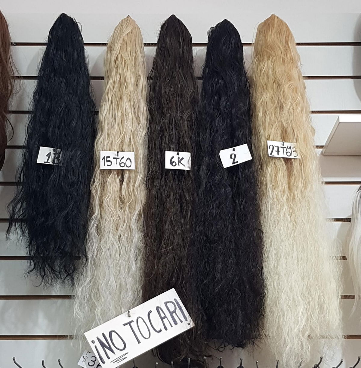 - Tonos disponibles : rubio miel degrade rubio platino 90cm , rubio manteca degrade rubio platino 90cm , castaño 90cm , negro azabache 70cm . negro natural 90cm.