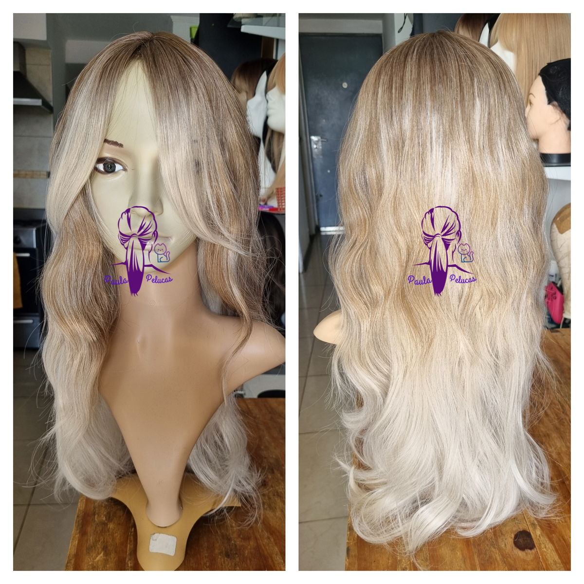 Fibra sintética kanekalon opaco , tono castaño claro degrade rubio platino .