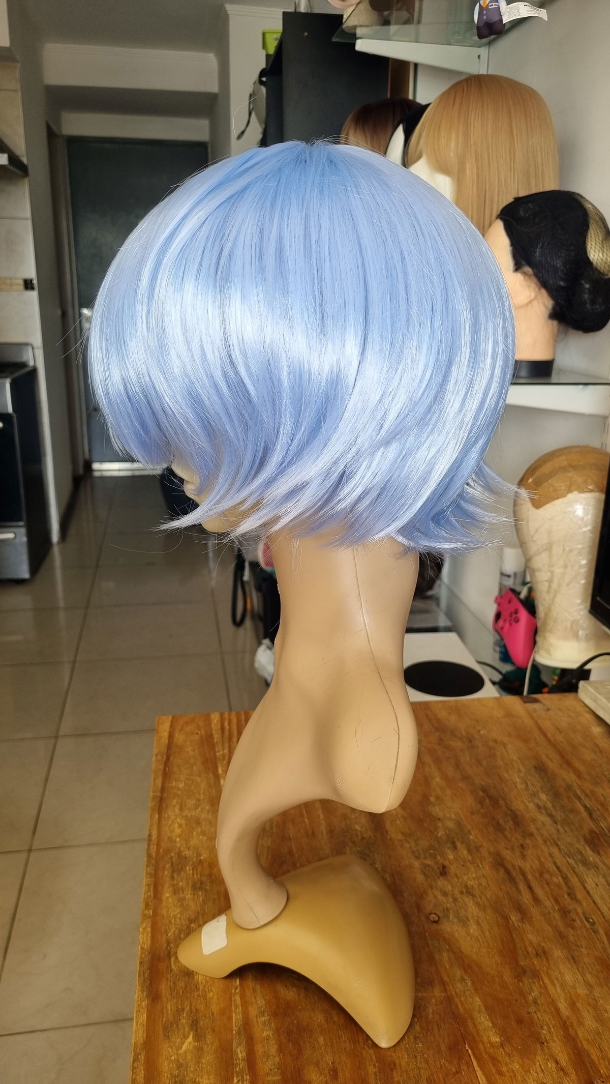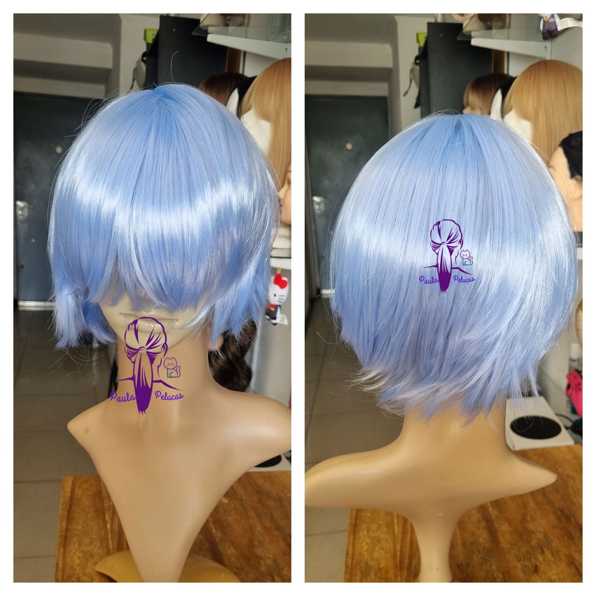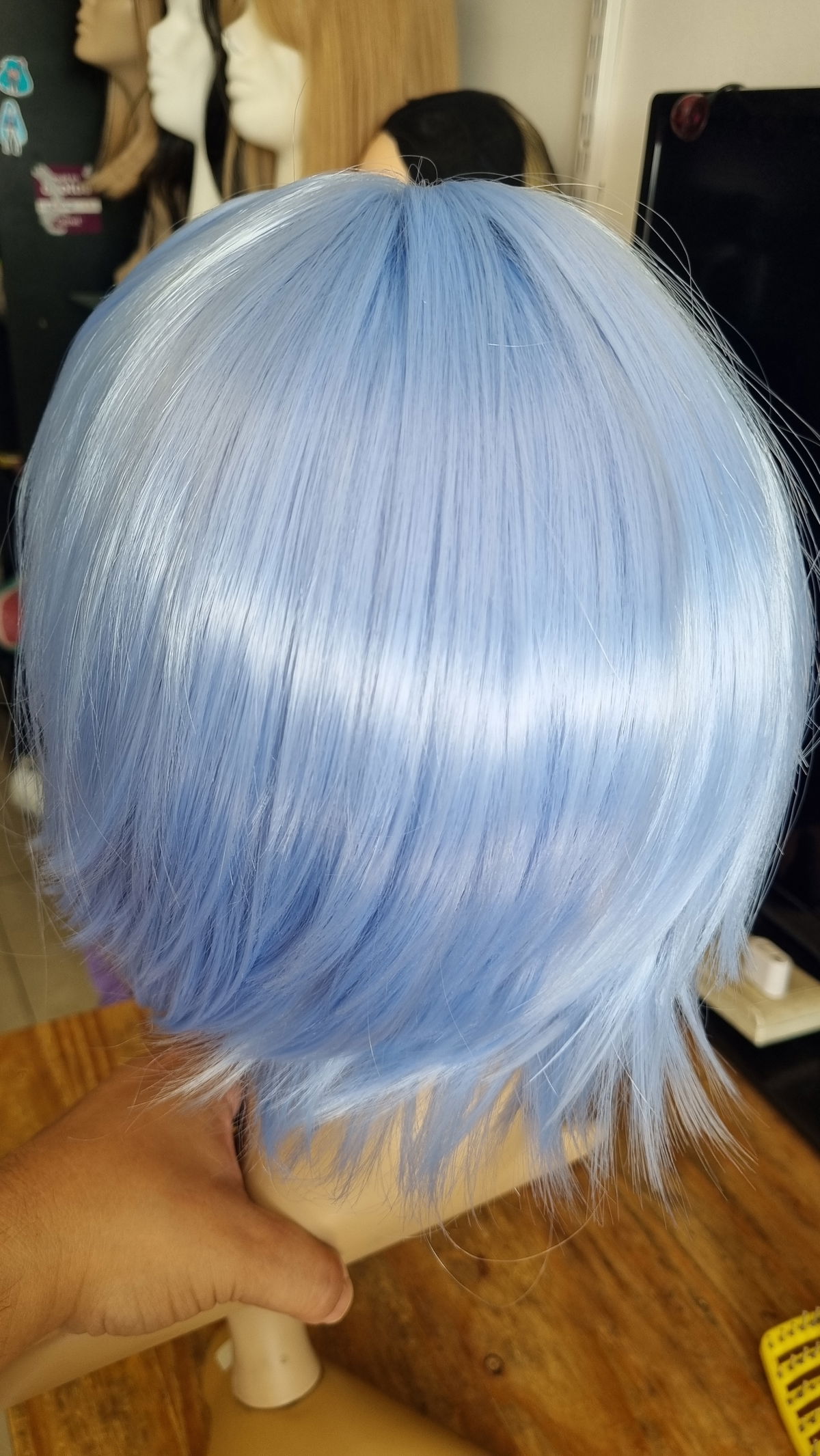 Peluca corta desmechada celeste claro