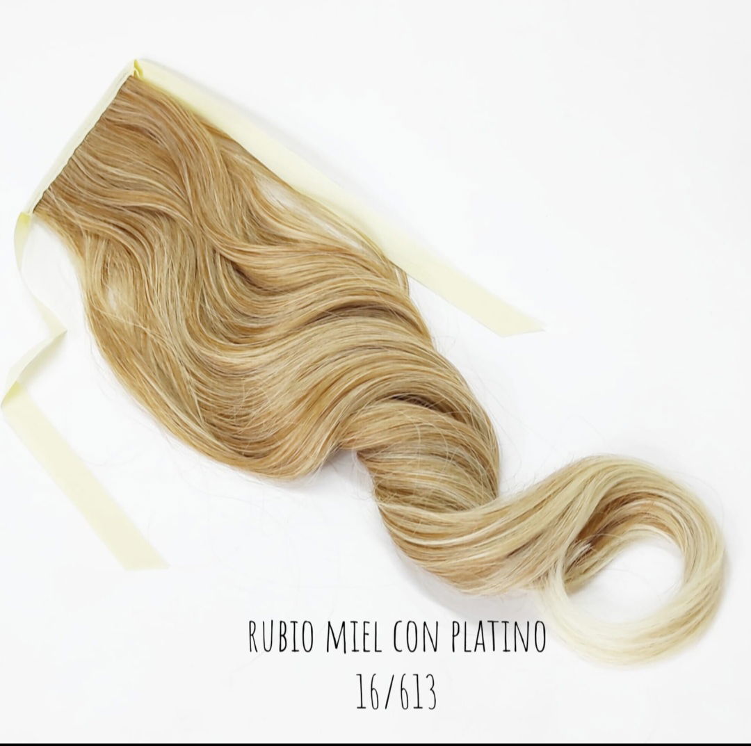 Postizo cola con cinta rubio miel degrade rubio platino
