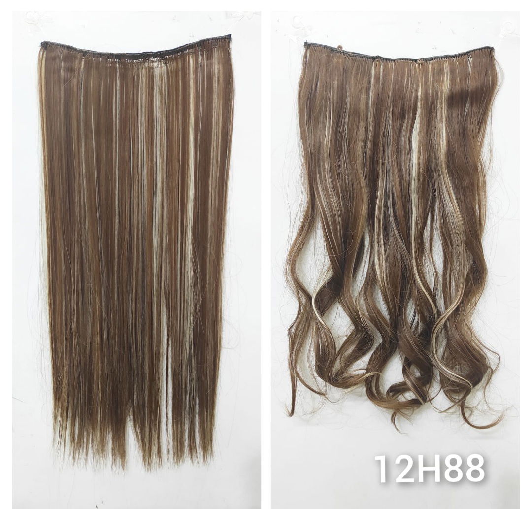 Cortina de pelo castaño reflejos fibra premium
