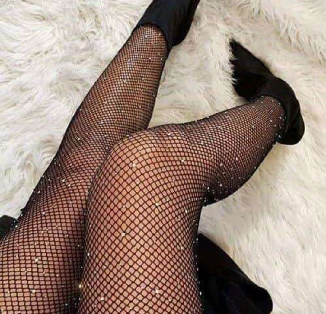 Medias en color negro con strass en color plata , talle unico van de s a XL ( 50/52 pantalon ) , en la parte del pie son cerradas.