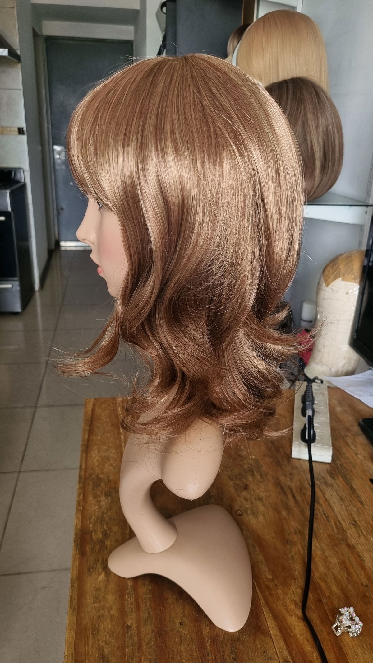Fibra sintética kanekalon semi opaca , tonobase castaño mix de pelitos cobrizos .